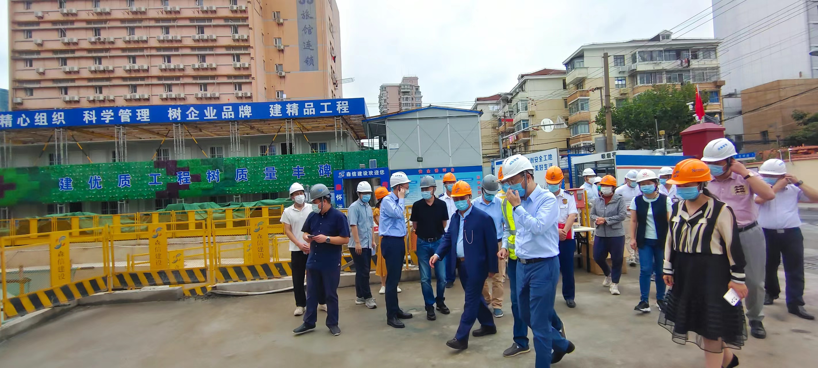 9月30日上午,虹口區(qū)委常委、副區(qū)長周嶸一行蒞臨我司中西醫(yī)院項目,檢查節(jié)前安全生產(chǎn)工作,集團董事長王文其陪同檢查。