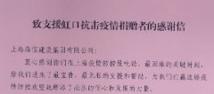 4月20日,公司收到來自虹口區(qū)委、區(qū)政府的感謝信,感謝公司在疫情防控期間的社會擔當與責任奉獻。 3月以···
